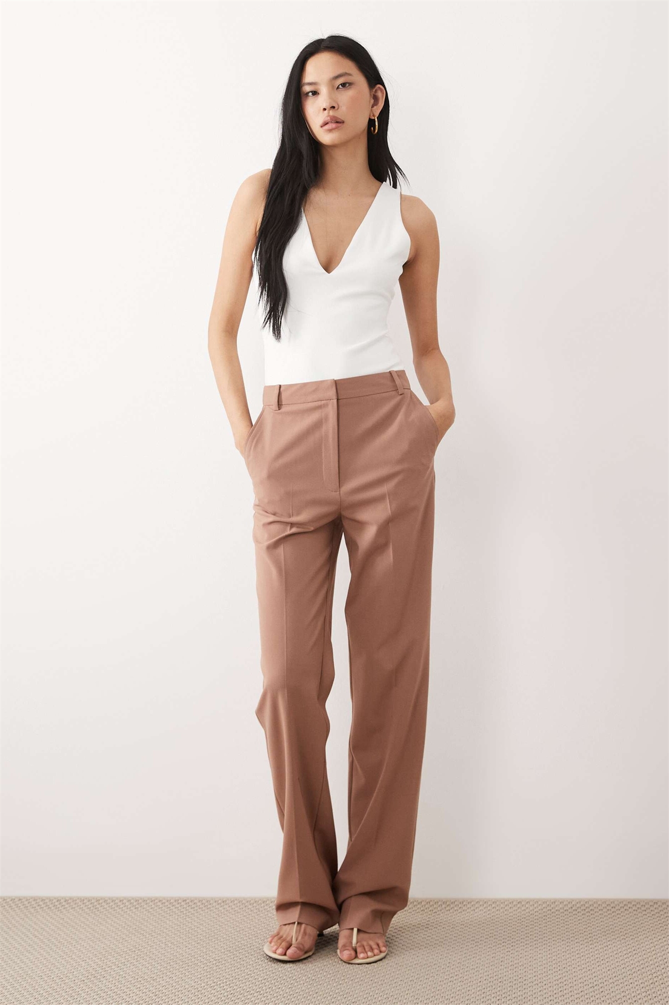 Высокие брюки прямого кроя с зауженными штанинами