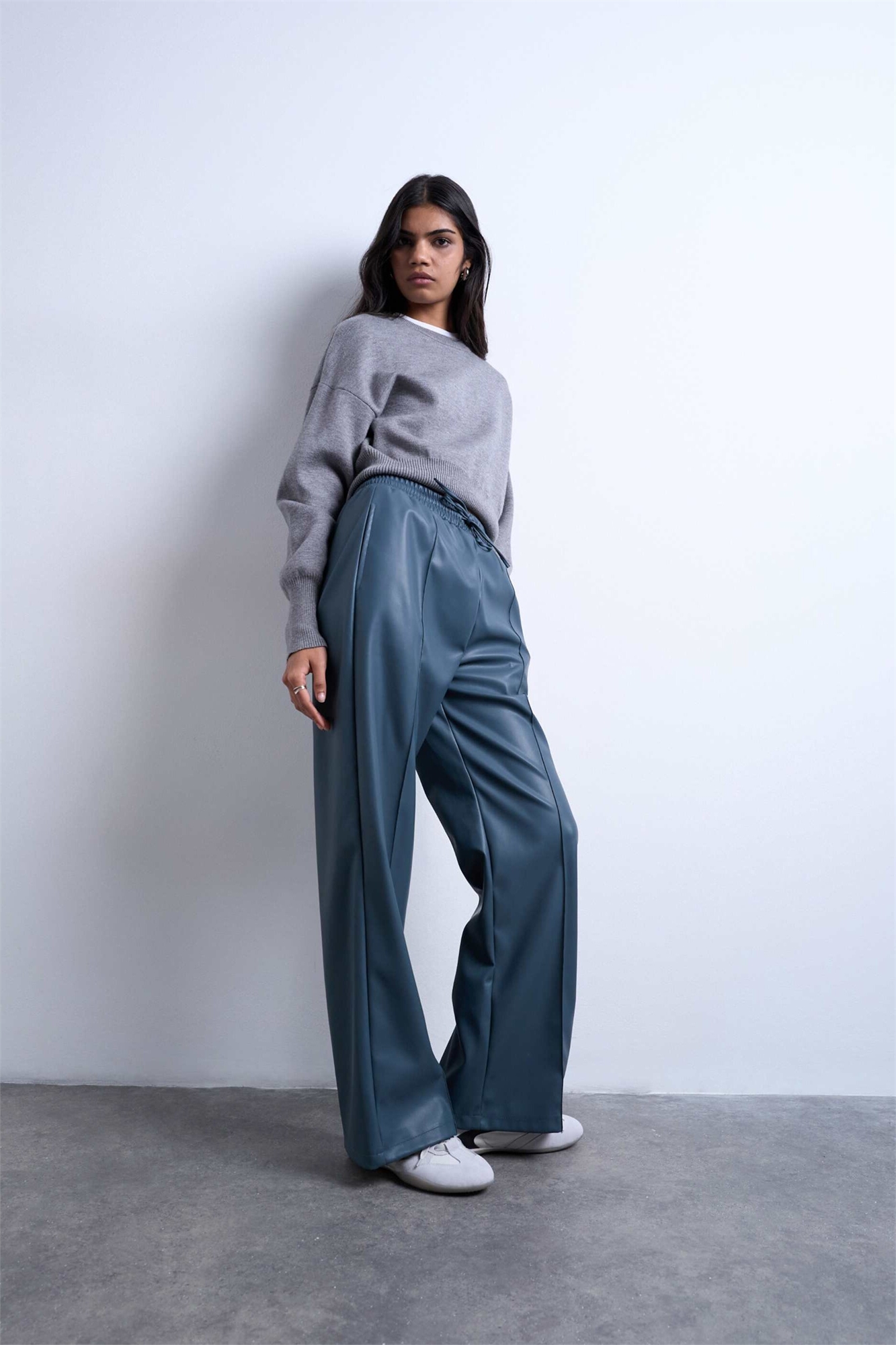 Джоггеры из искусственной кожи с широкими брючинами и декоративными швами