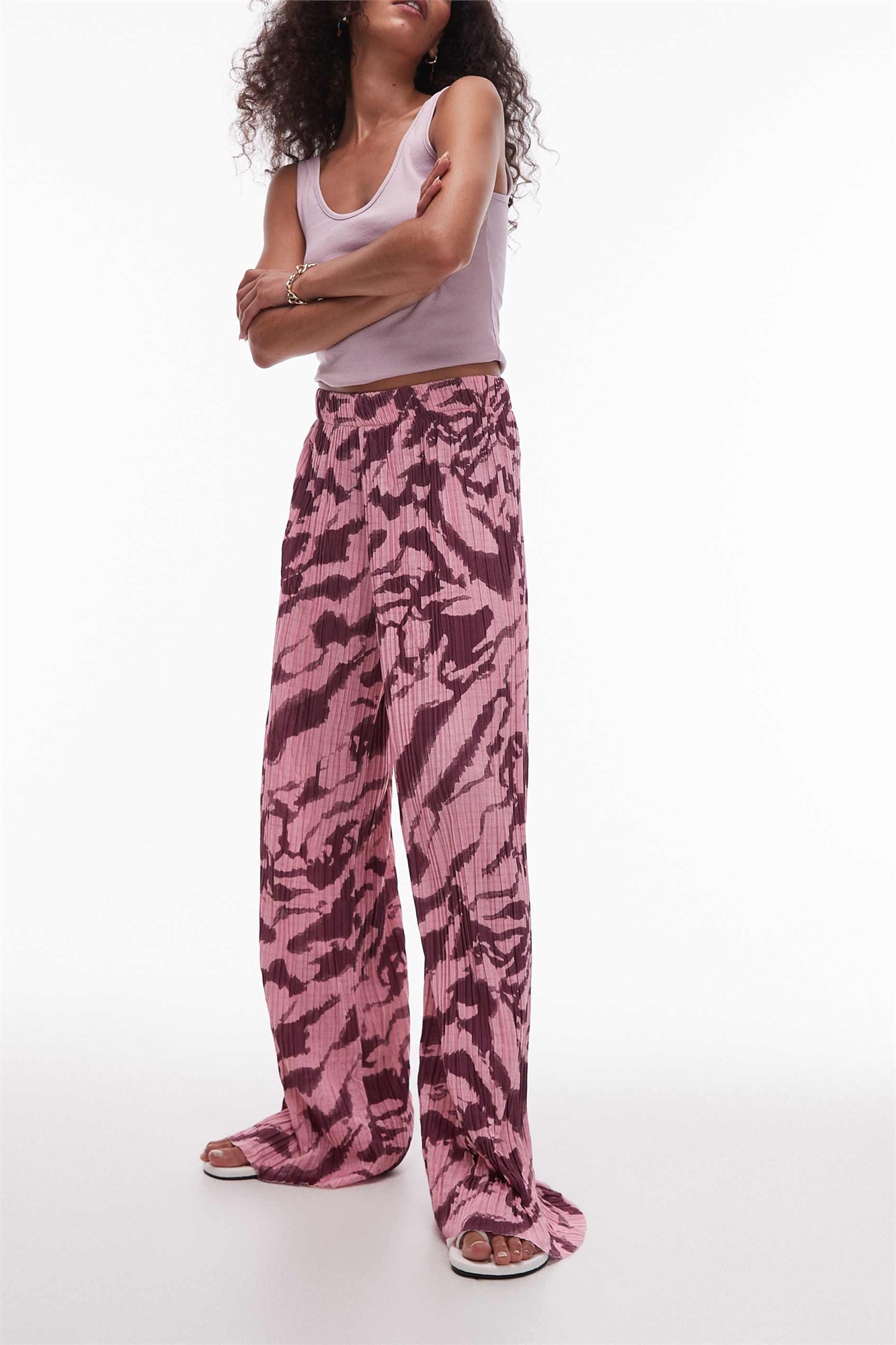 Брюки с широкими брючинами и гофрированным принтом «зебра»