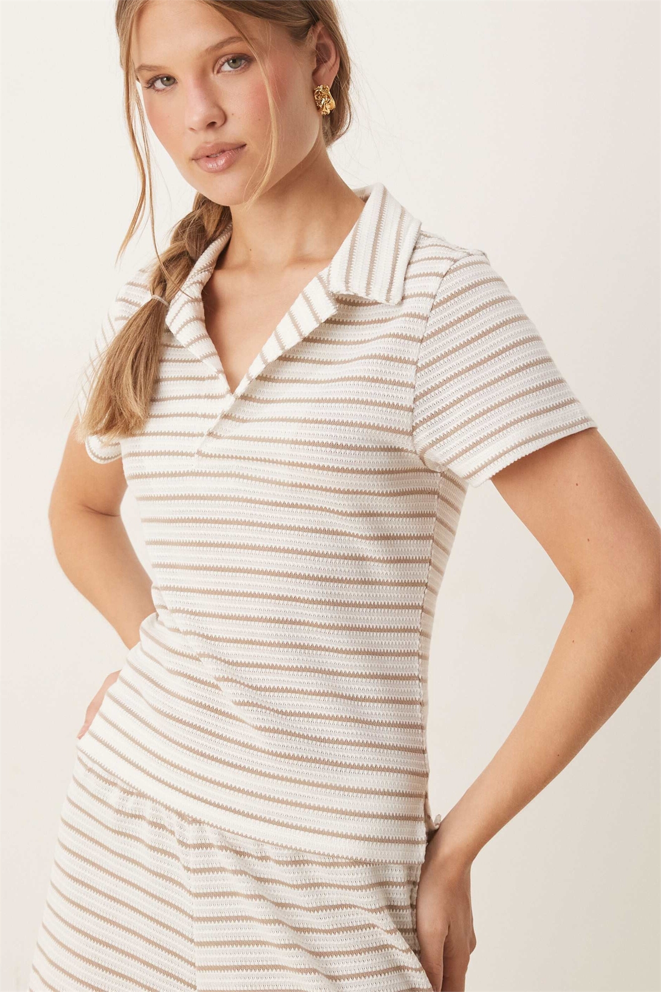 Трикотажная рубашка-регби с полосками, усаженная co-ord