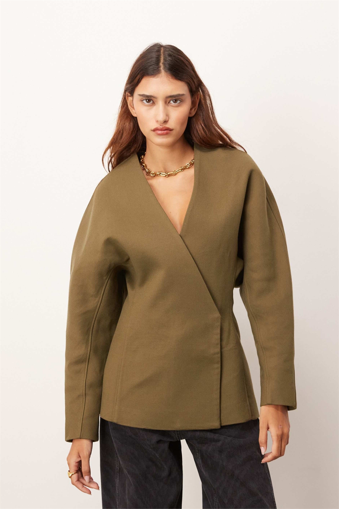 Блейзер из плотной твиловой ткани с зауженной талией и вырезанным силуэтом