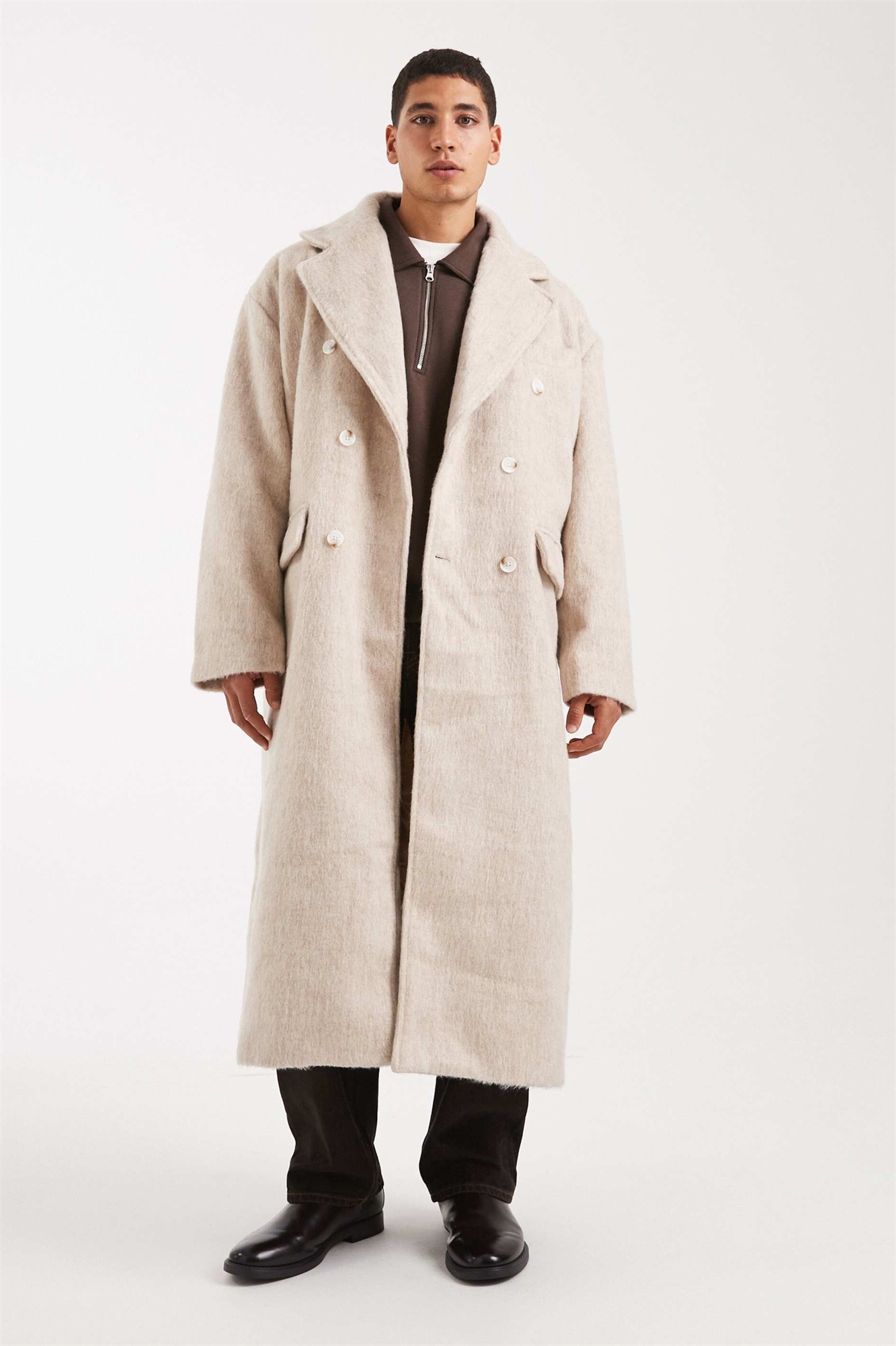 Длинное пальто оверсайз с эффектом ворсистой шерсти