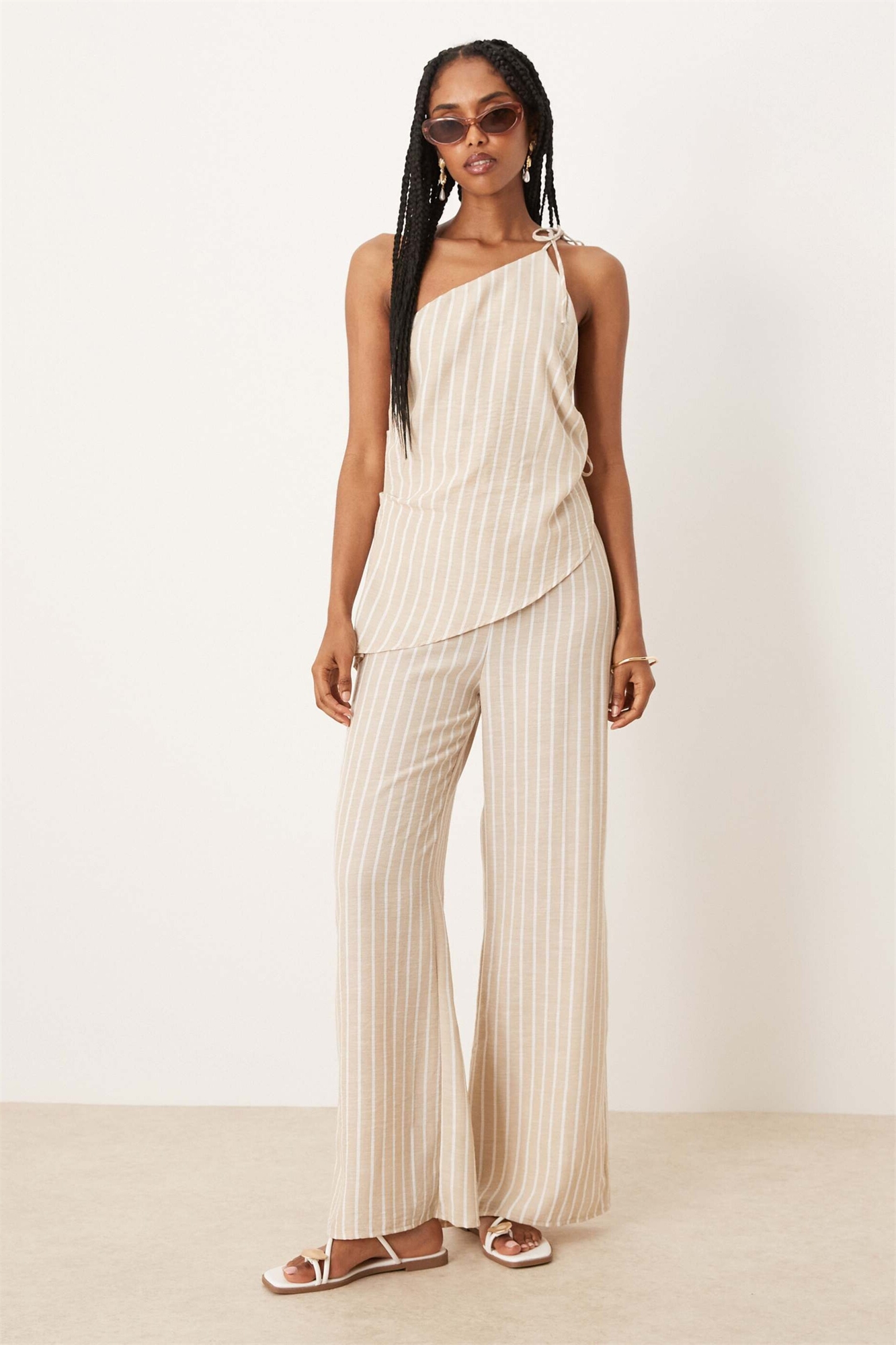 Комбинезон из льна с асимметричными завязками