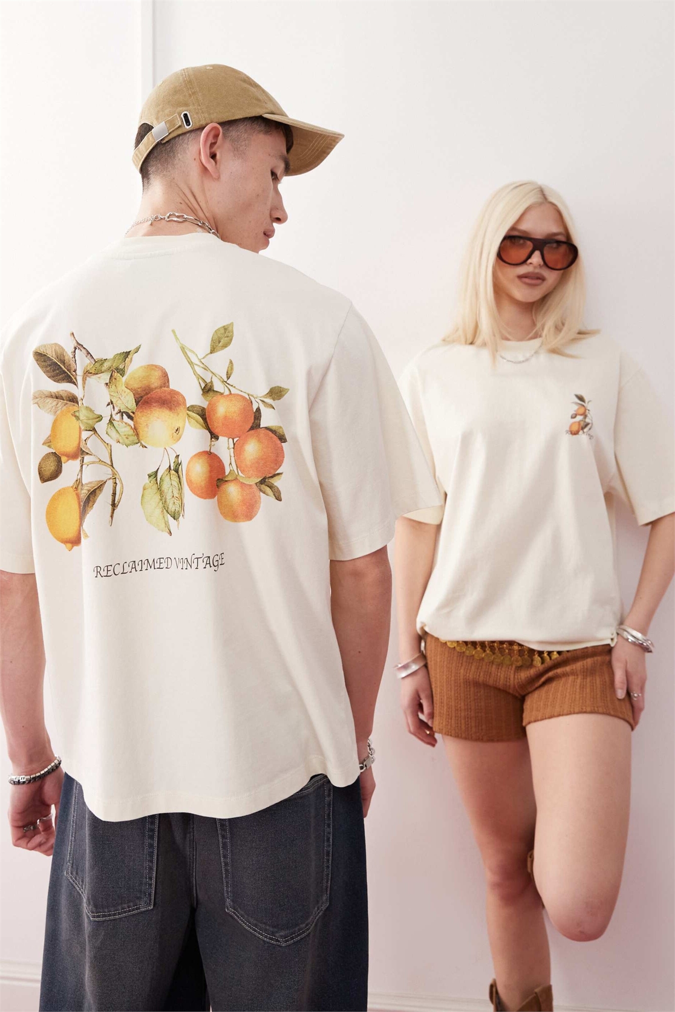 Универсальная укороченная футболка прямого кроя с принтом в виде фруктов на спине