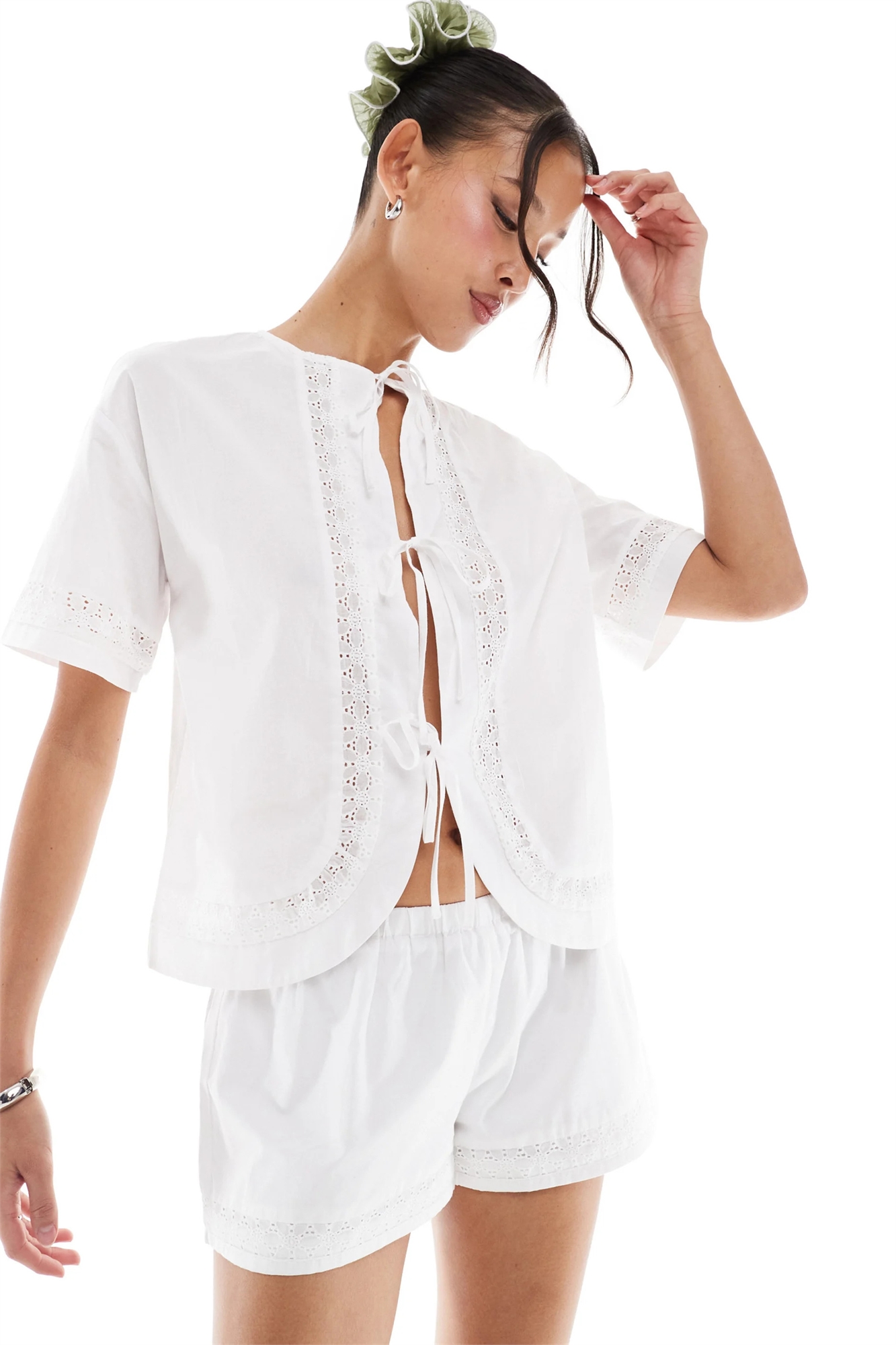 Английская вышивка: легкая ткань с вышитым узором с вырезами. Основной материал: 100% хлопок.