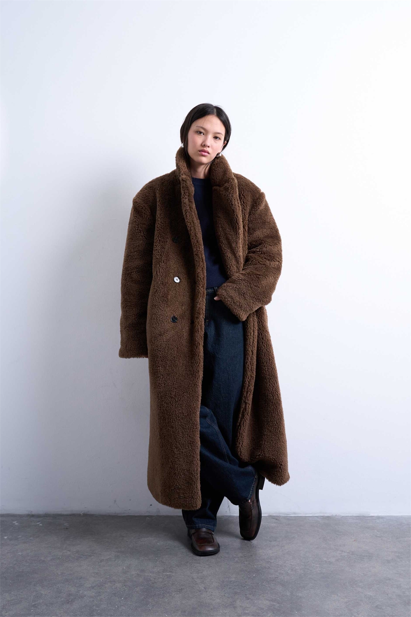 Длинное пальто-капюшон с двойной застежкой