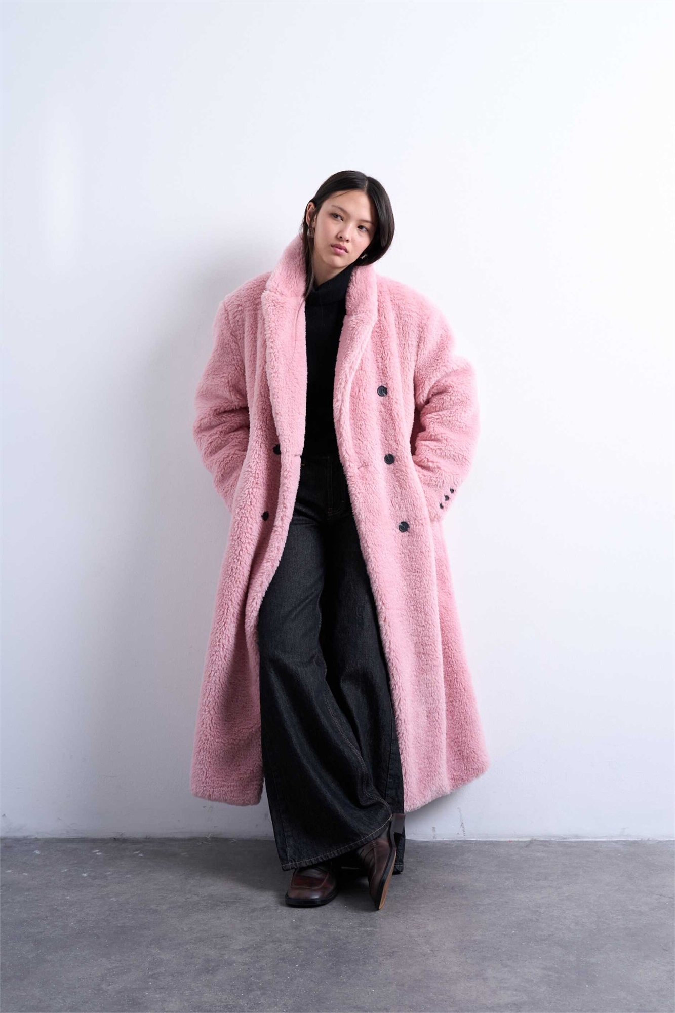 Длинное пальто-капюшон с двойной застежкой