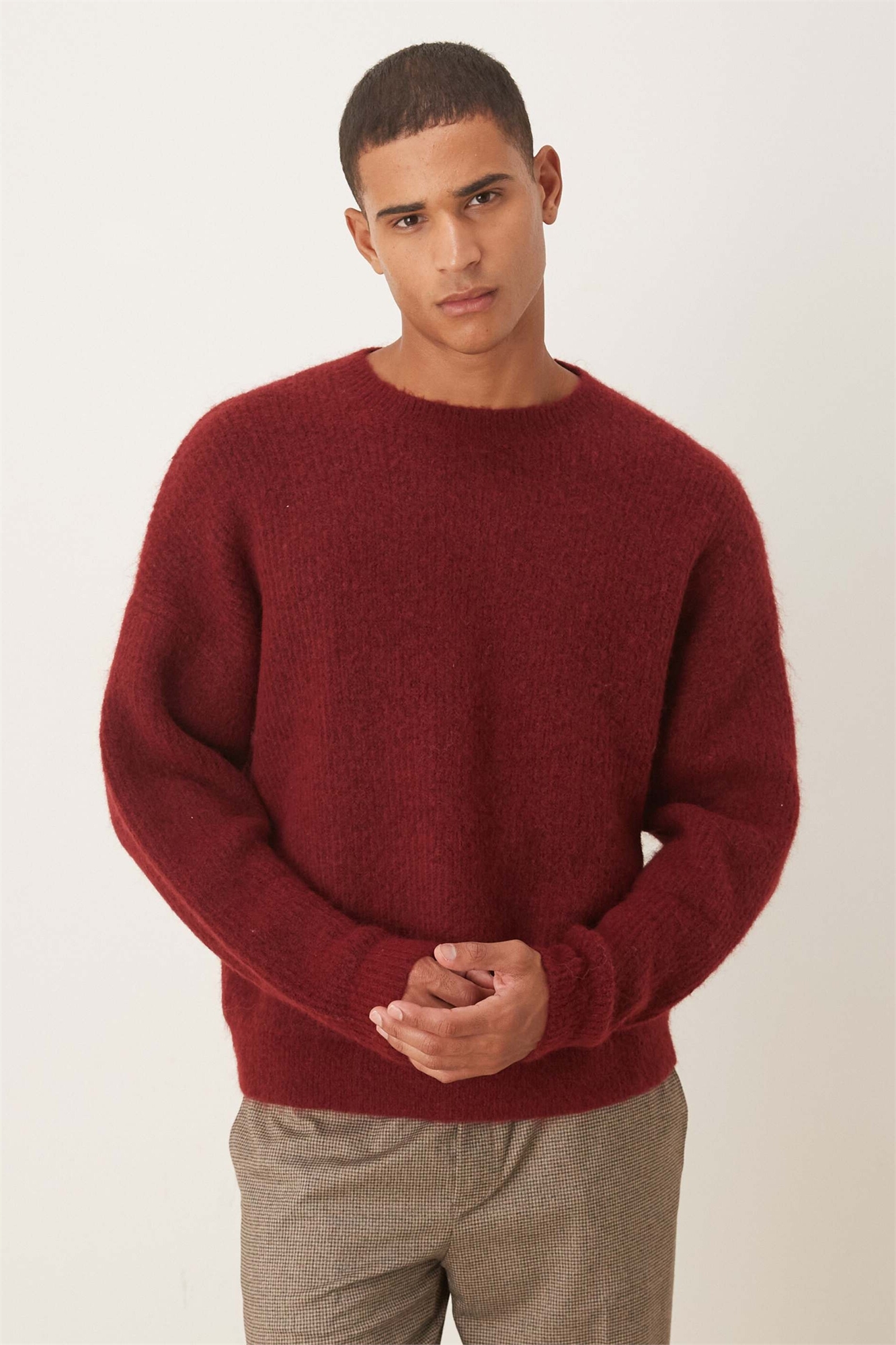 Объемный вязаный свитер из шерсти с круглым вырезом