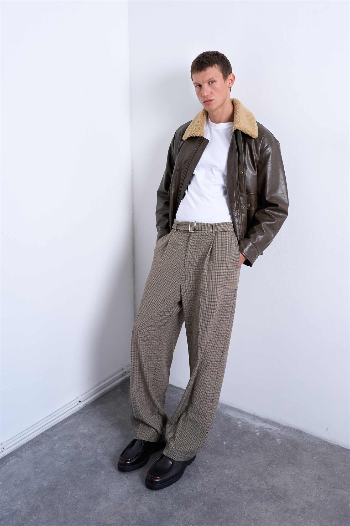 Брюки с широкими брючинами и поясом в клетку «хаундстоут»