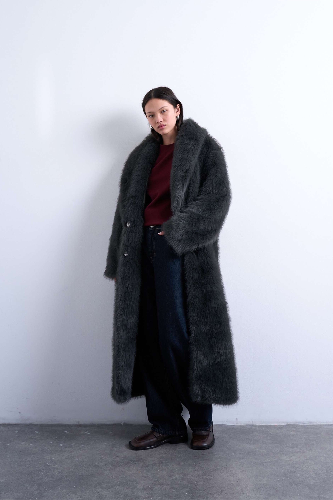 Пальто-шаль из искусственного меха свободного кроя с удлиненным покроем