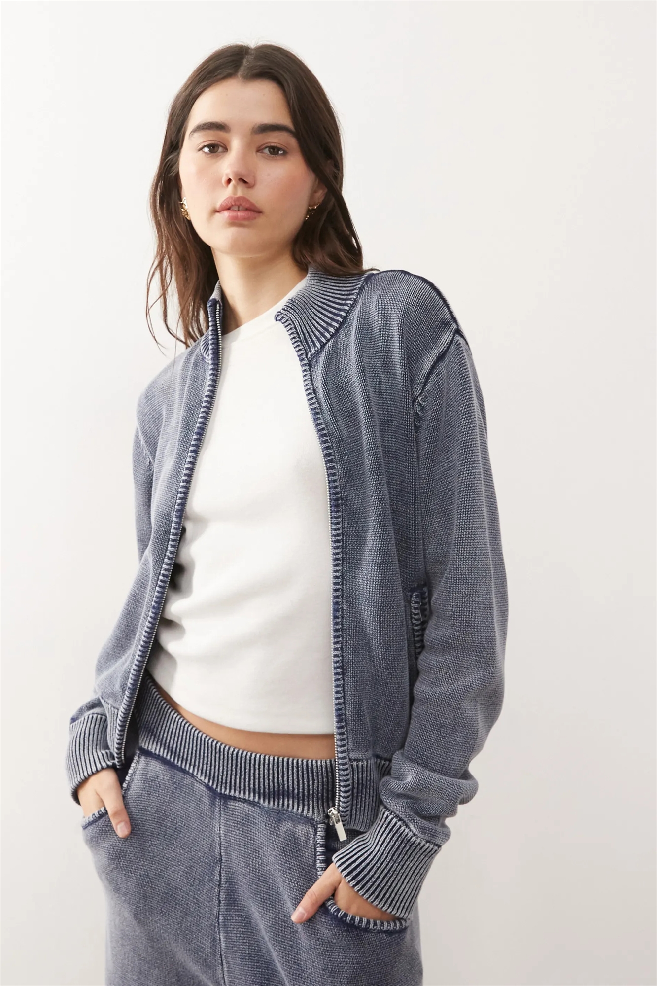 Свитшот с капюшоном и молнией, с вафельной текстурой, обработанный кислотой co-ord