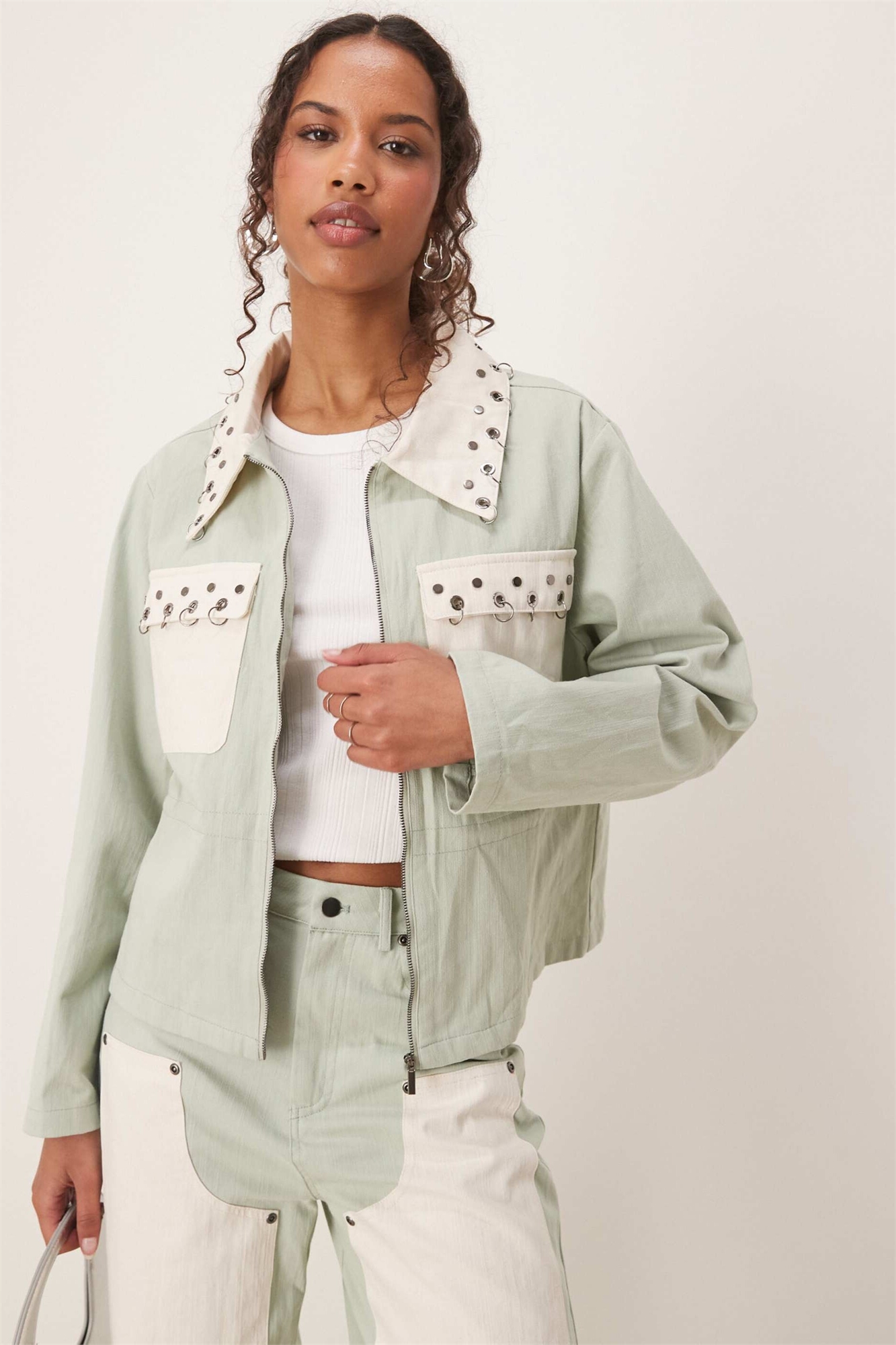 Неэластичный деним: светло-зеленая отбелка Основной материал: 100% хлопок.