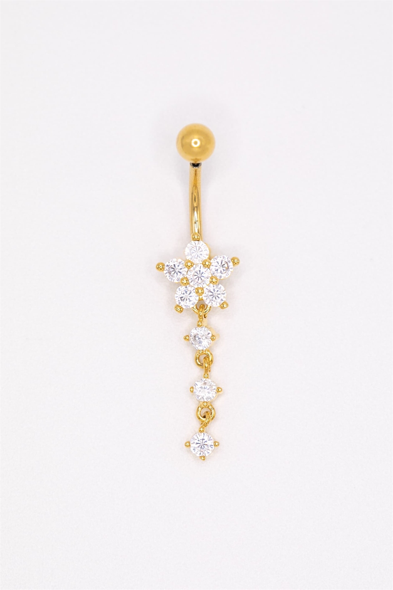 Пирсинг для пупка в виде цветка из титана с цирконами, покрытый золотом
