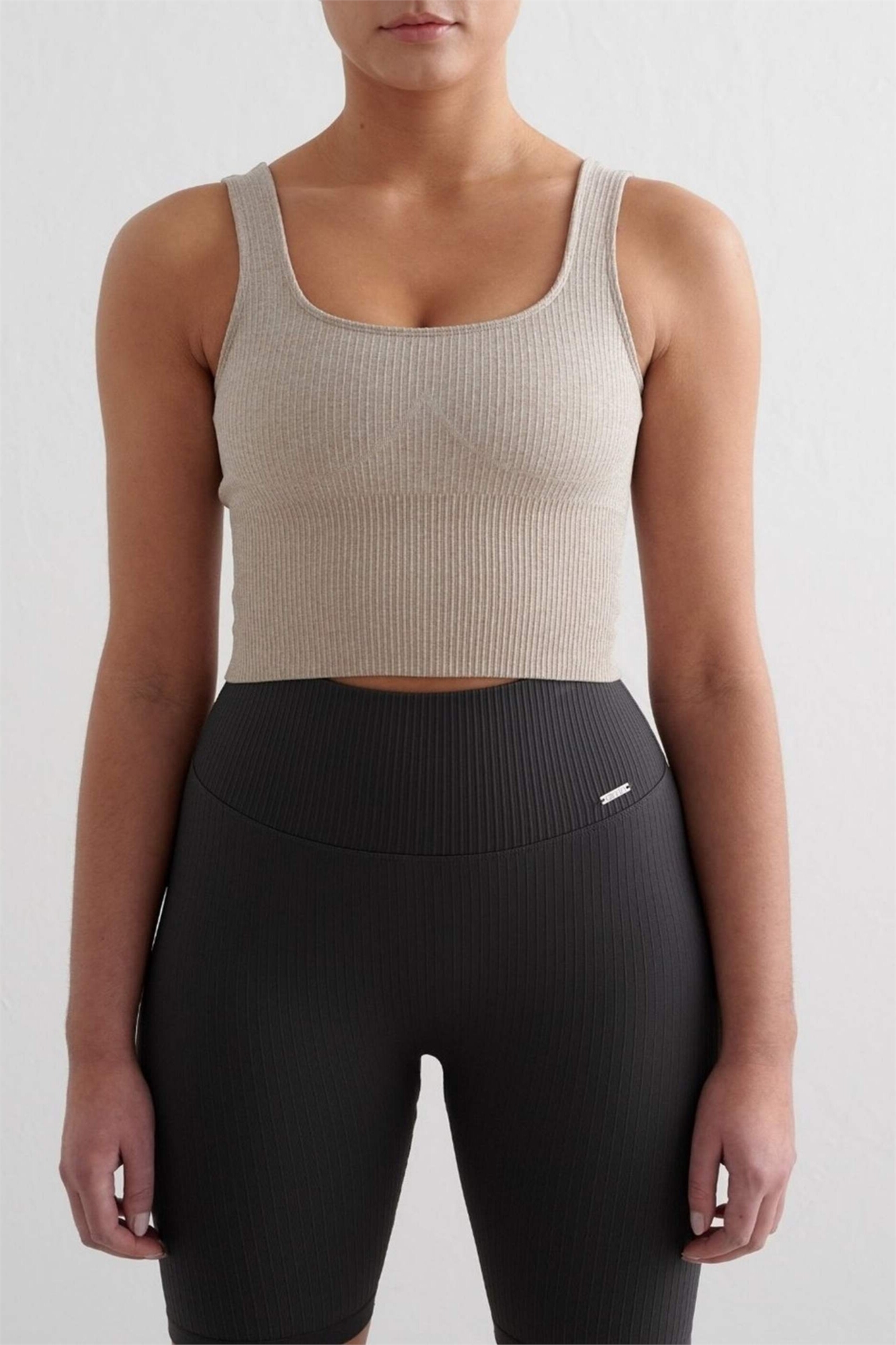 Бежевый меланжевый бюстгальтер-бралетт с ребристой текстурой и бесшовным кроем