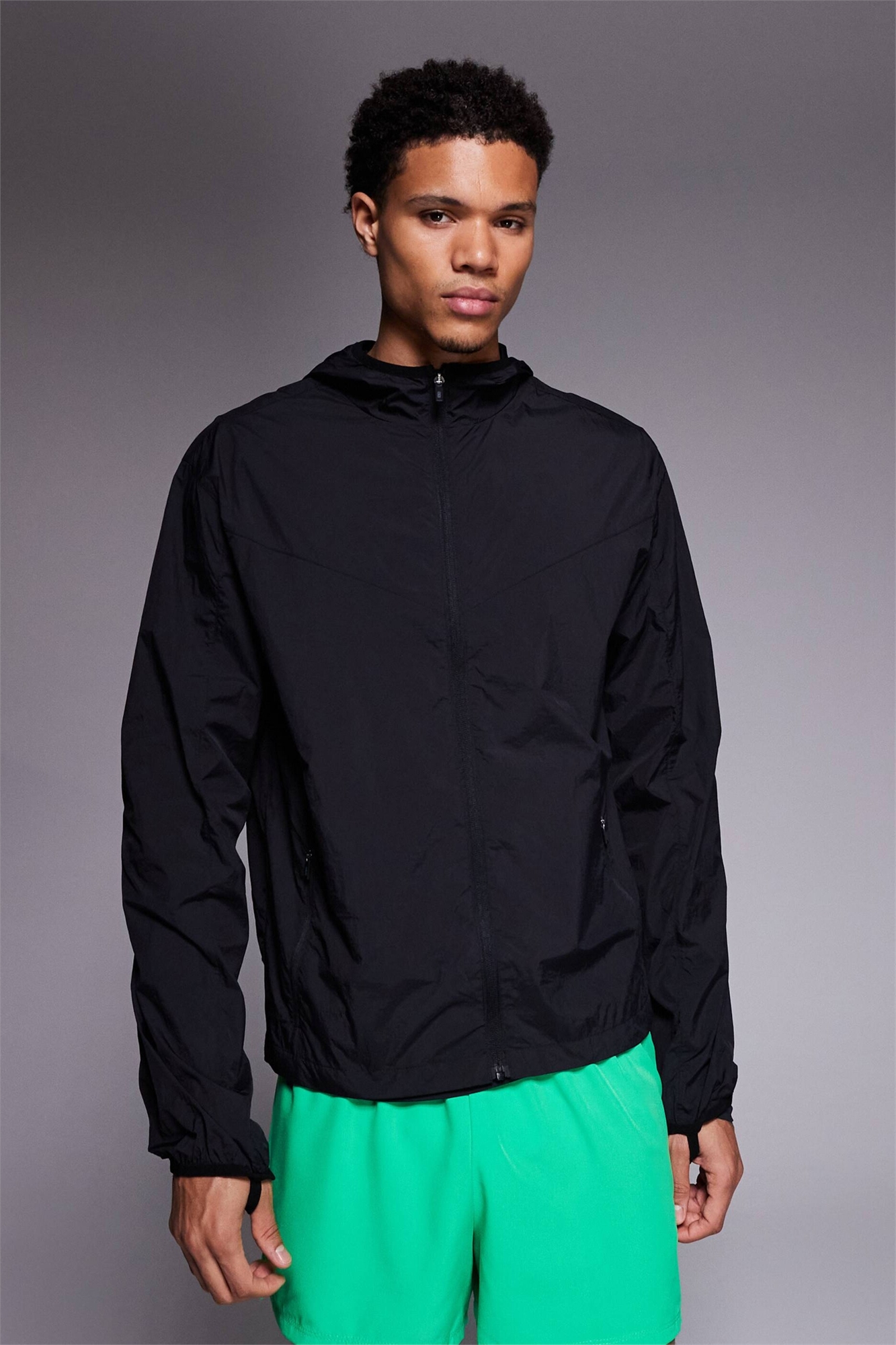 Легкая куртка для бега из гофрированного нейлона с водоотталкивающим покрытием и капюшоном, прямого кроя