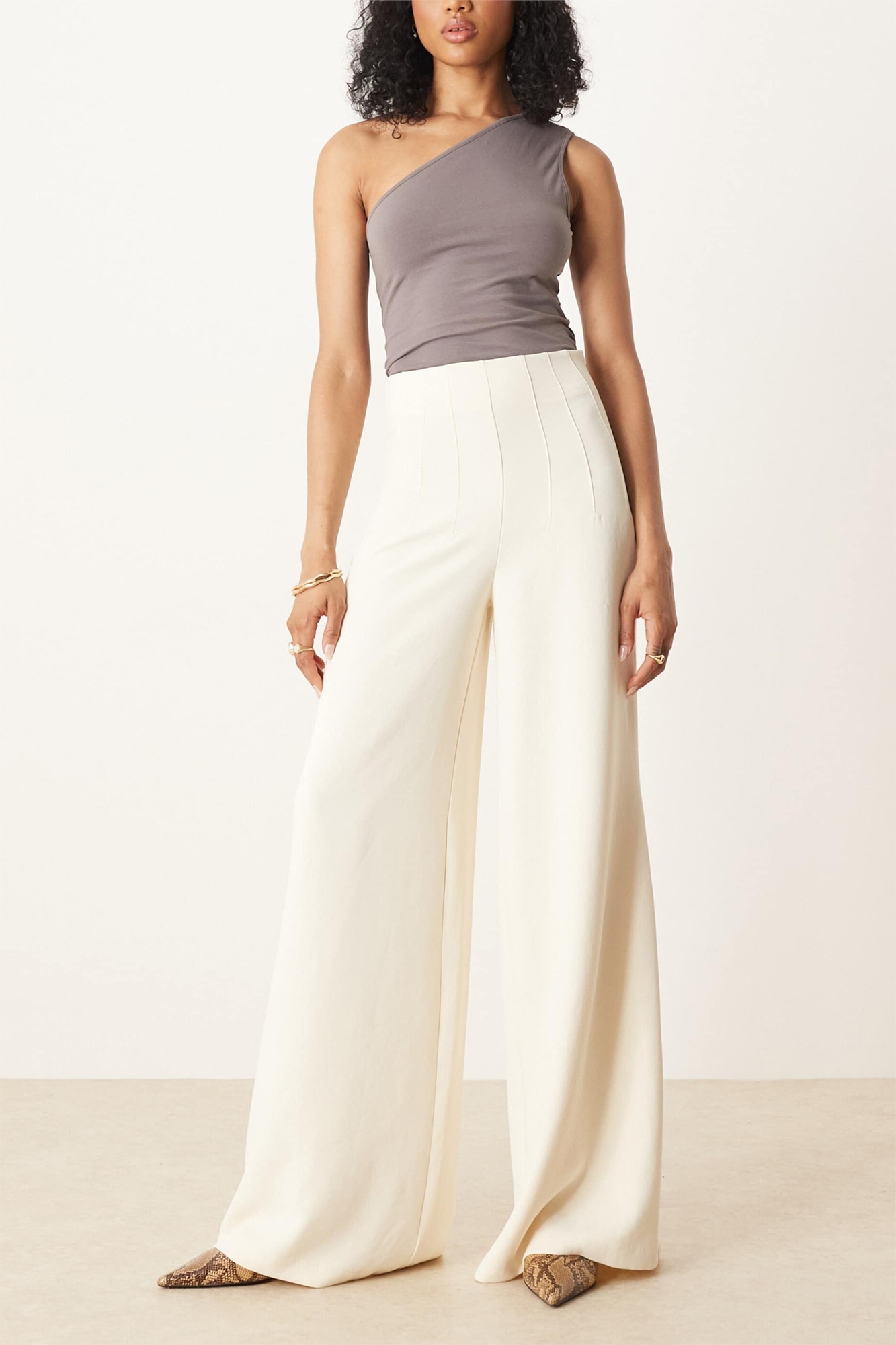 Брюки-палаццо с высокой талией и элементами корсета, скроенные по фигуре