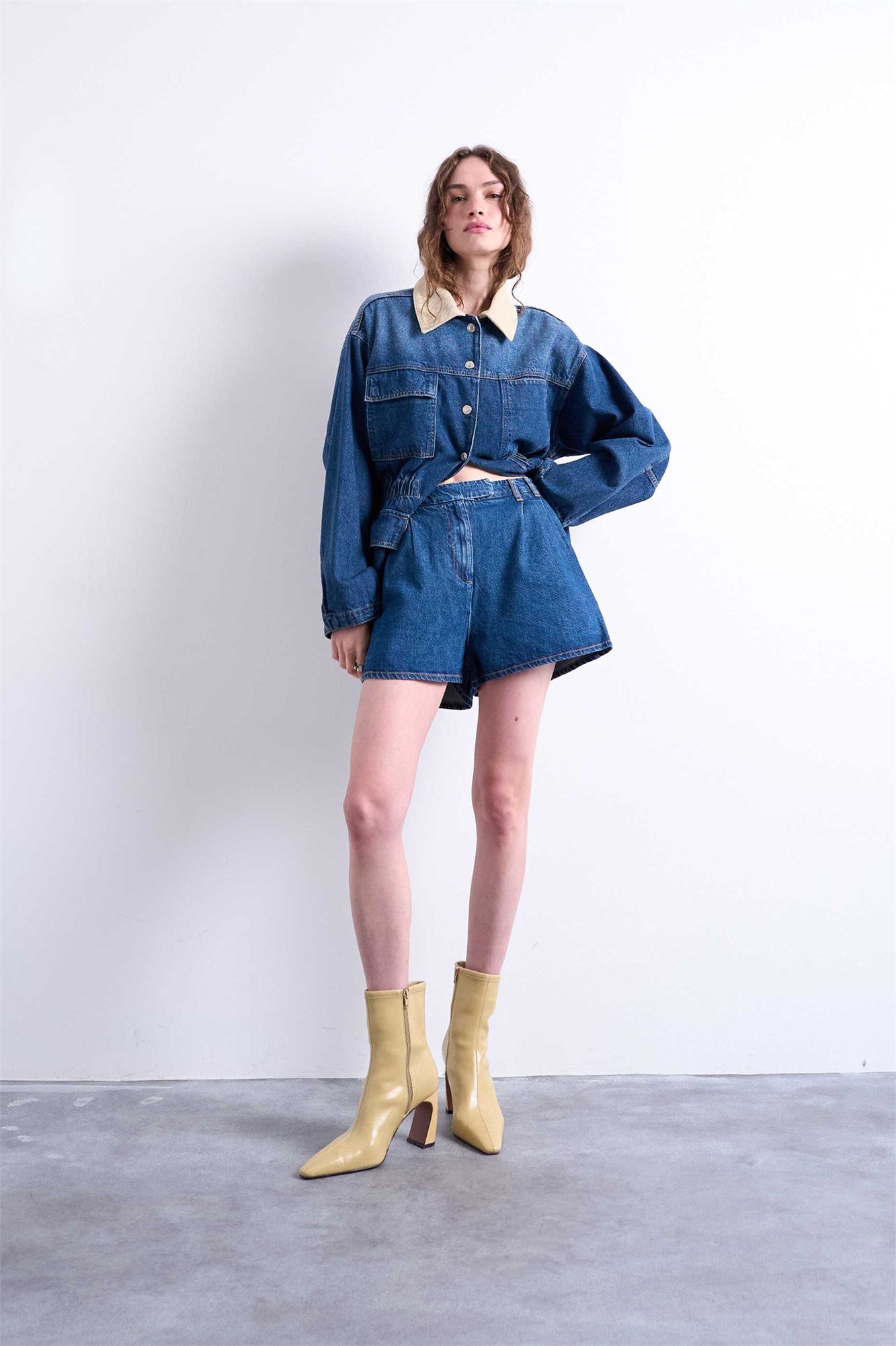 Джинсовые шорты с плиссировкой