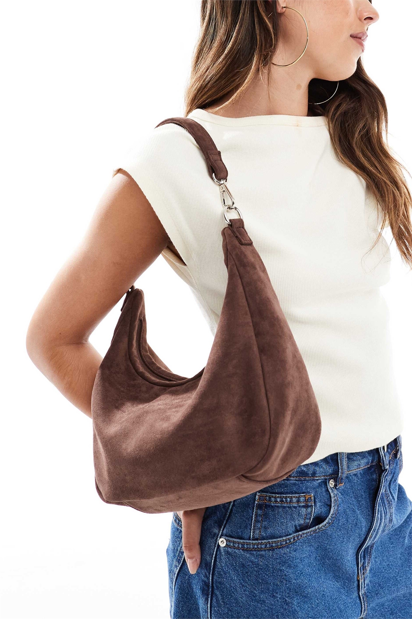 Сумка через плечо и на ремне из искусственной замши с заниженными плечами