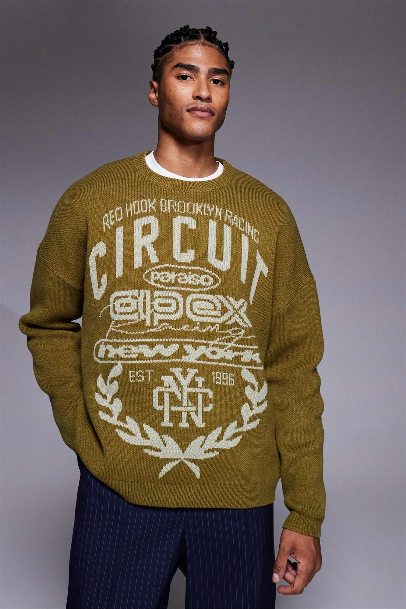 Свитер из трикотажа очень большого размера с надписью «мотокросс»