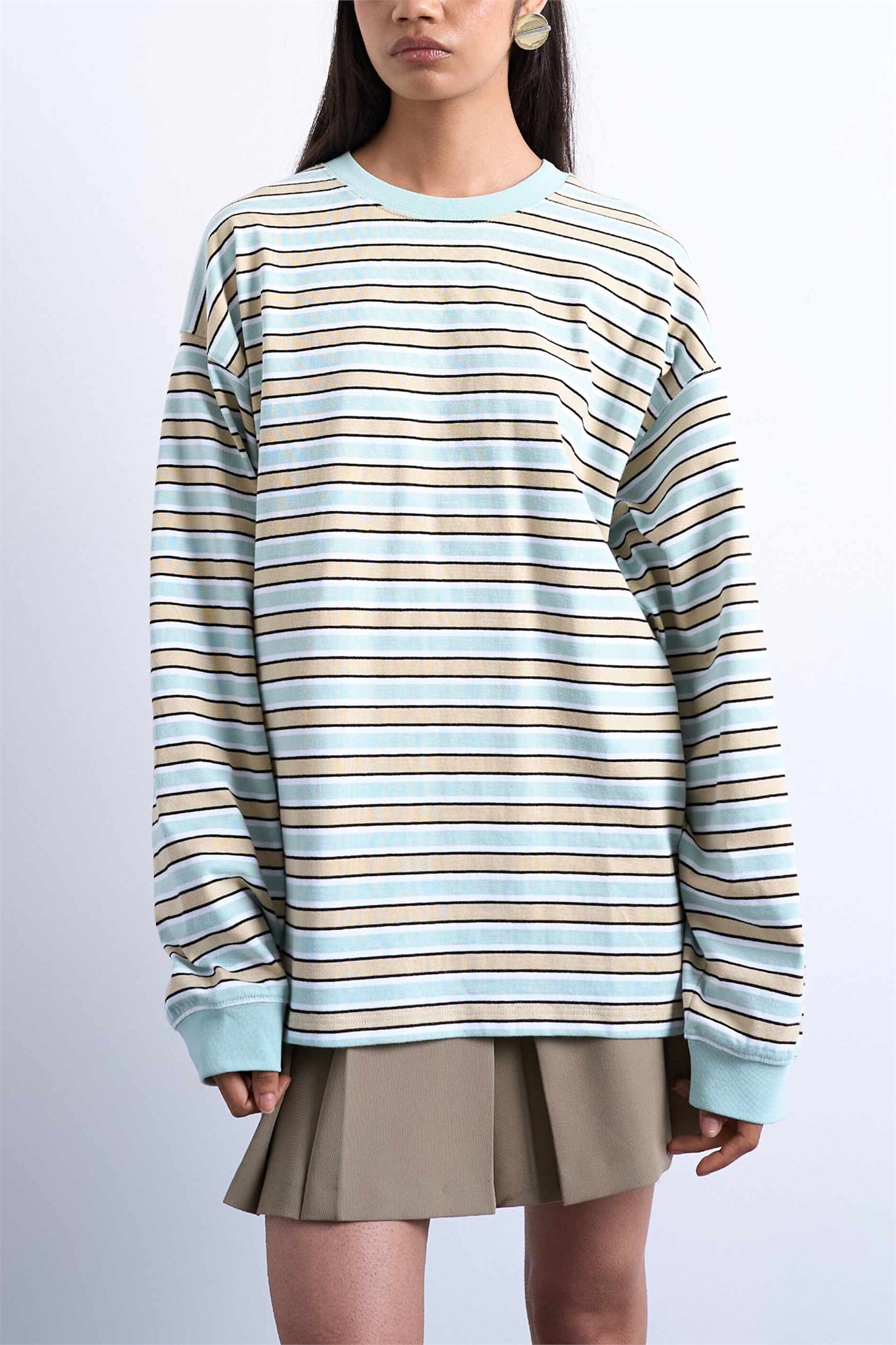 Футболка-скэтер свободного кроя с полосками и длинными рукавами