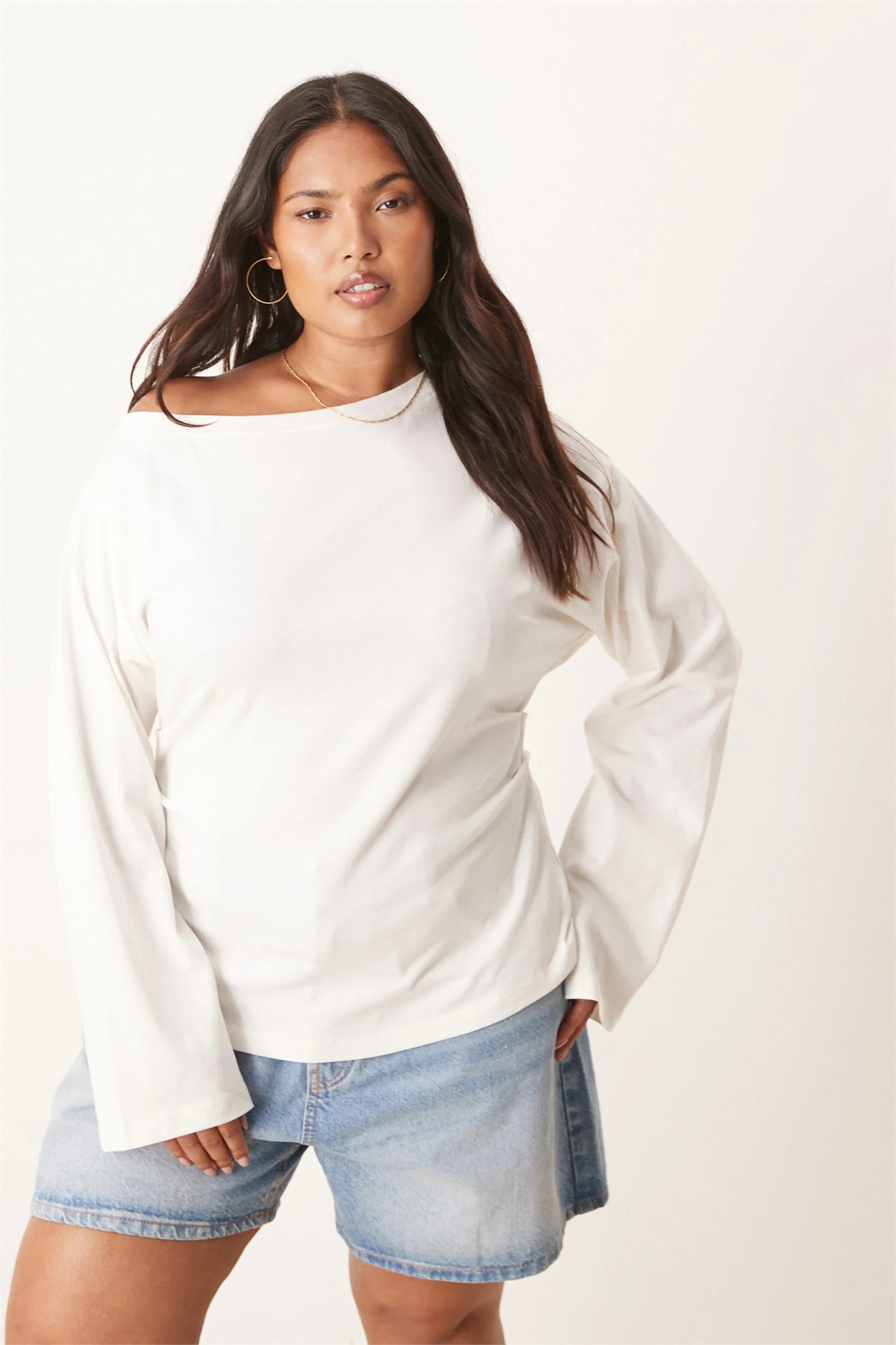 ASOS DESIGN: футболка с длинными рукавами, открытыми плечами и корсетной талией для полных