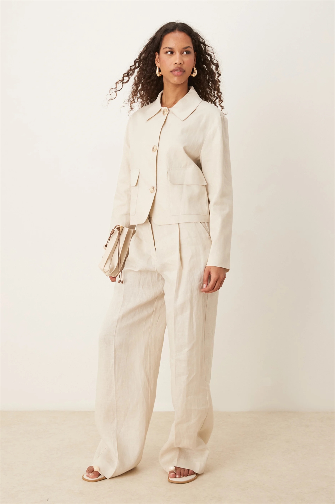Брюки из льна с широкими брючинами и складкой спереди co-ord