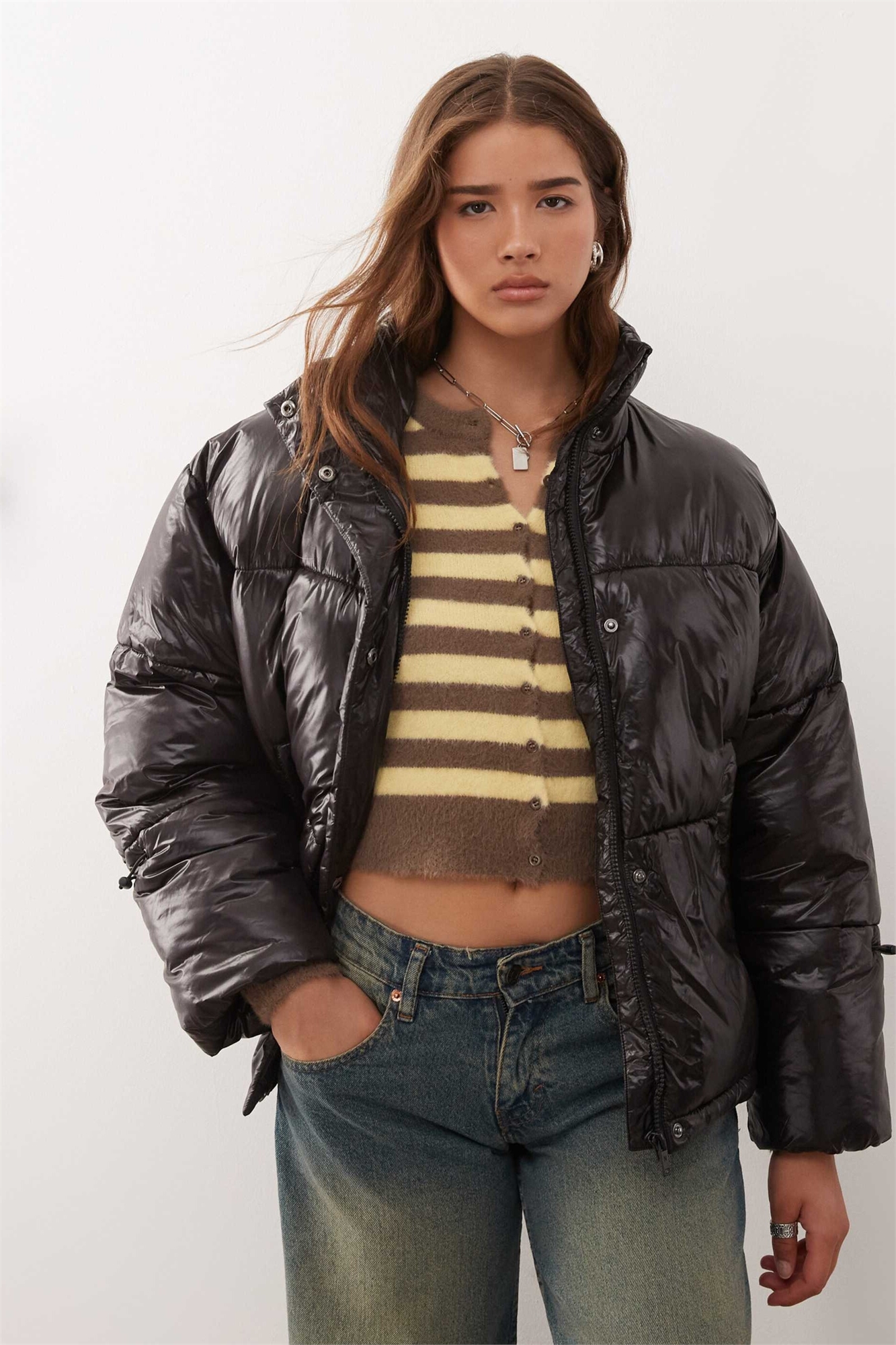 Блестящая пуховик