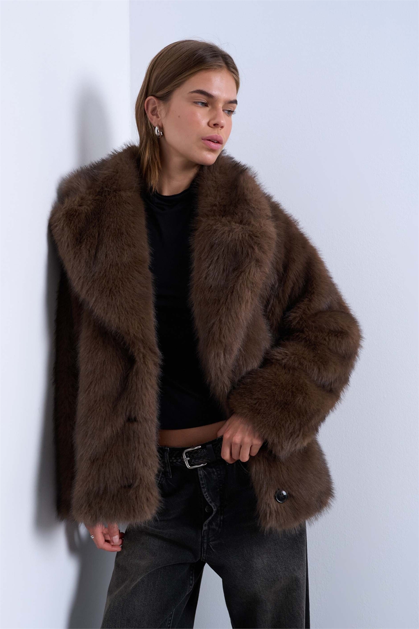 Короткая куртка из искусственного меха на пуговицах