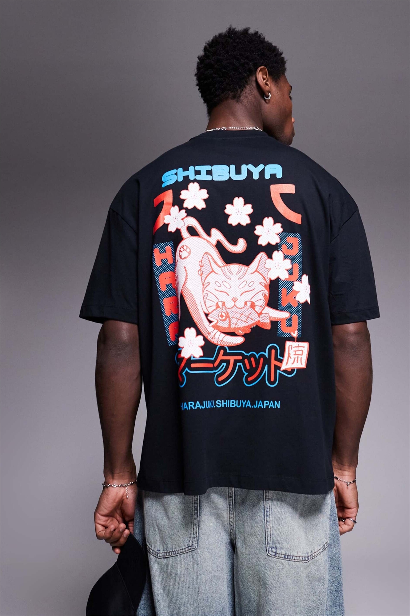 Футболка свободного кроя с сувенирным принтом черного цвета