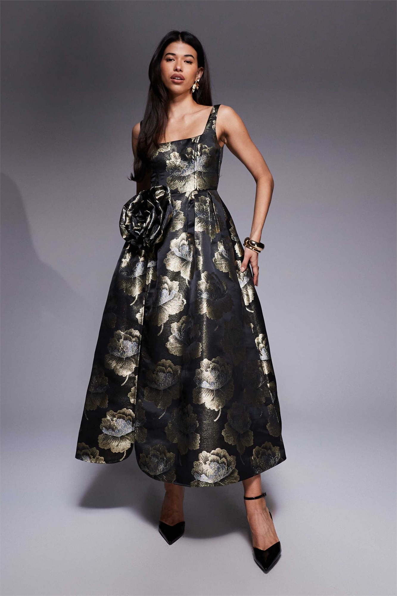 Макси-платье с 3D-жакардовым цветочным принтом