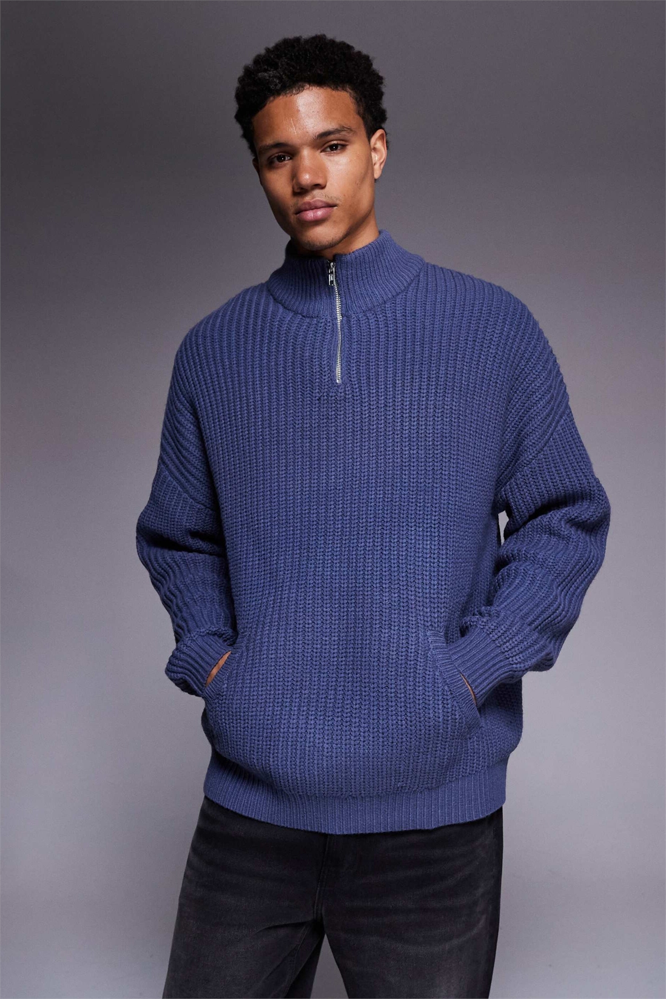 Объемный свитер из плотного трикотажа с полузастежкой-молнией