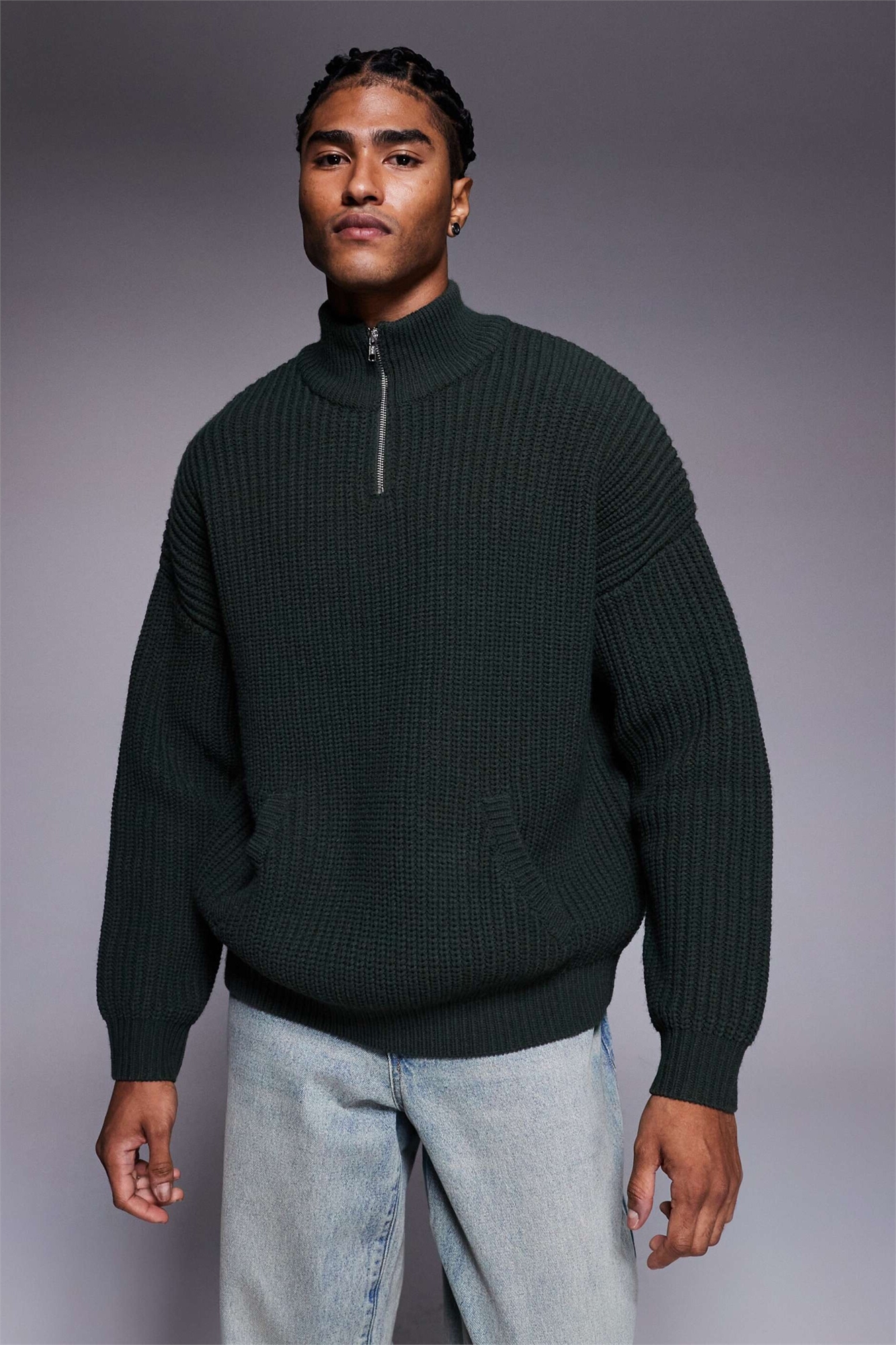 Свитер из плотного трикотажа большого размера с полузастежкой-молнией