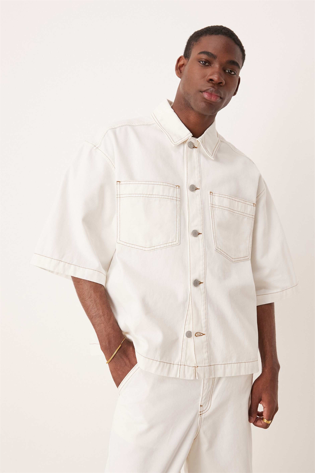 Джинсовая рубашка свободного кроя с короткими рукавами и накладными карманами co-ord