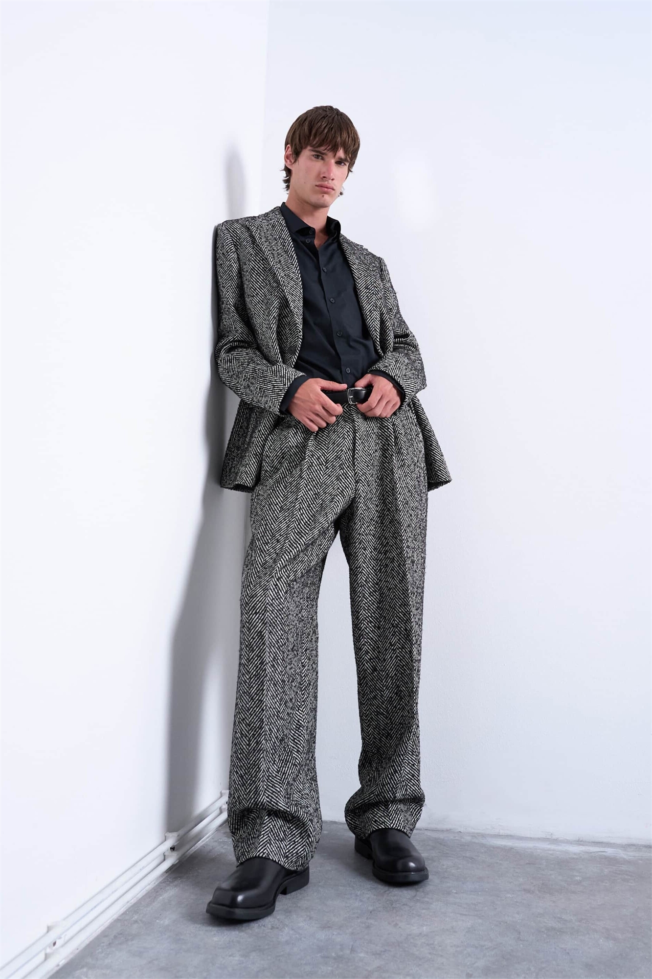 Брюки из шерстяной смеси с широкими брючинами и узором «елочка»