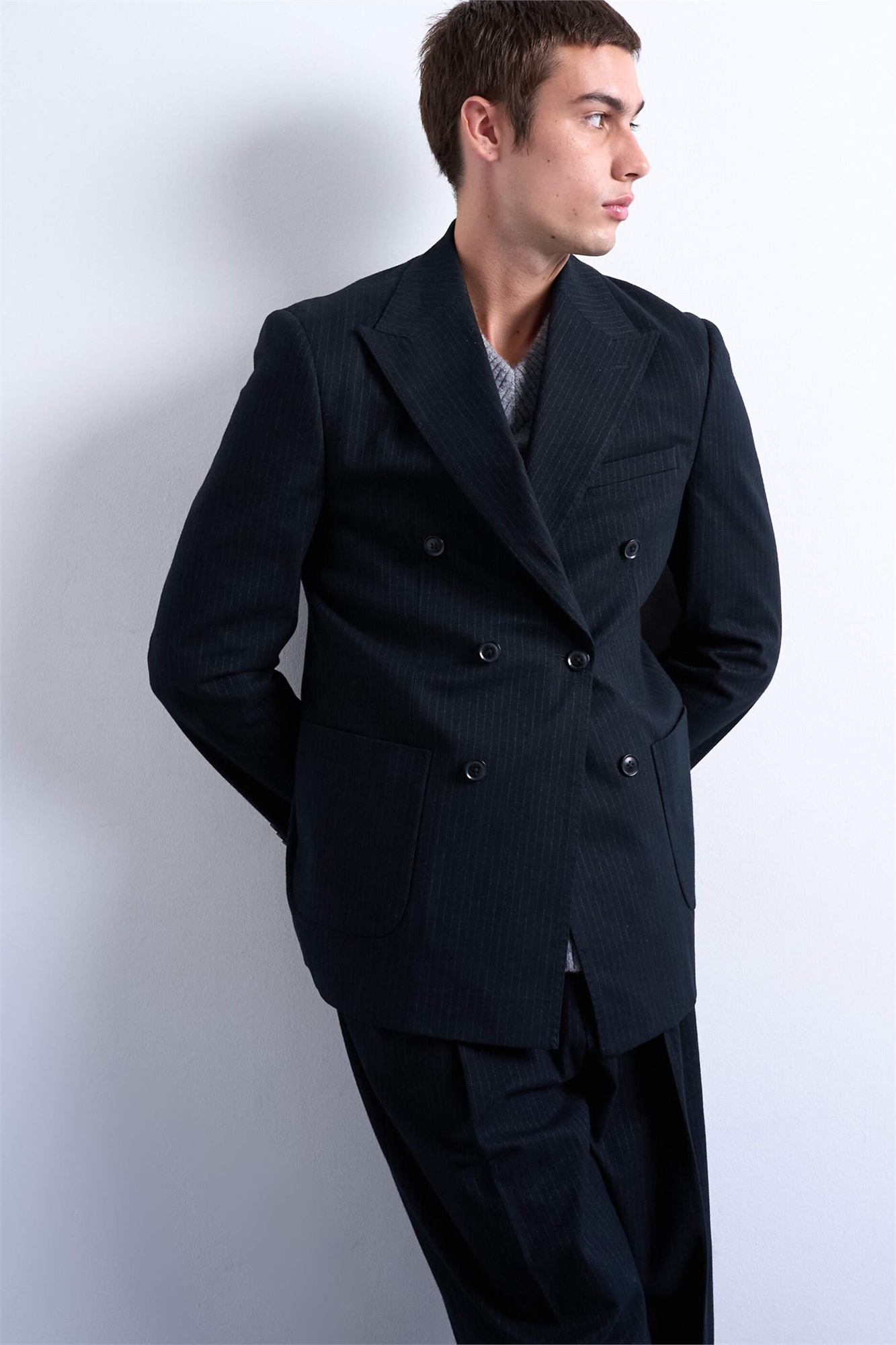 Блейзер с полосками и шерстяной текстурой, с двойной застежкой