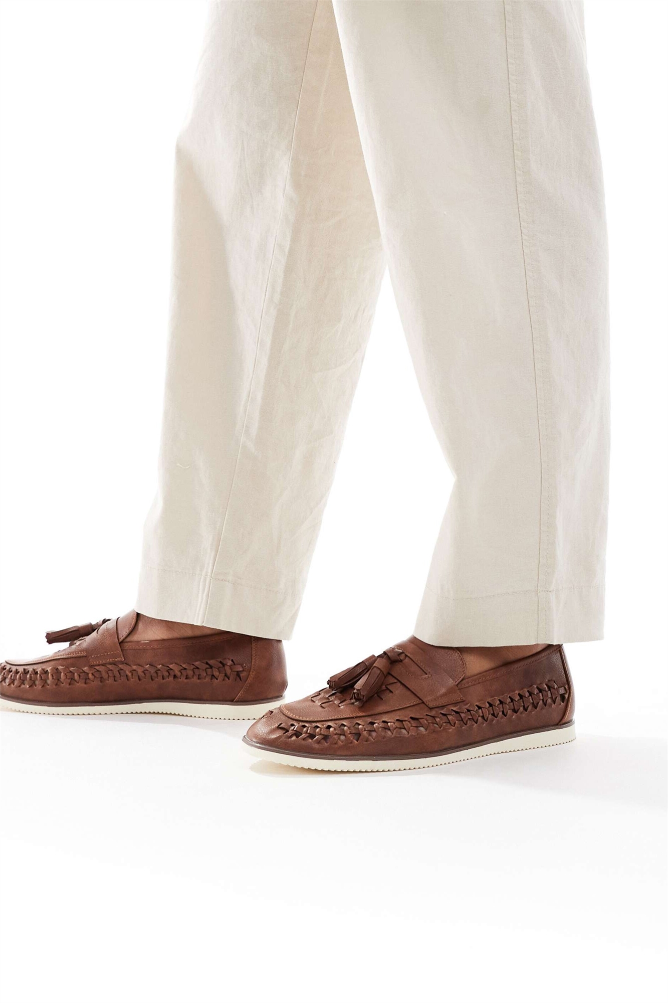 Лоферы из искусственной кожи, тканые, цвета «тан»
