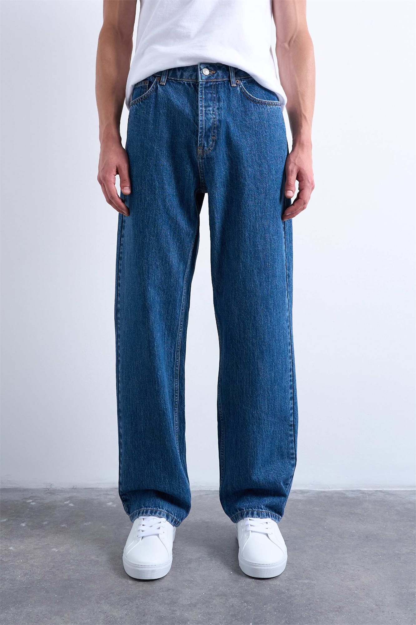 Джинсы свободного кроя из плотной ткани