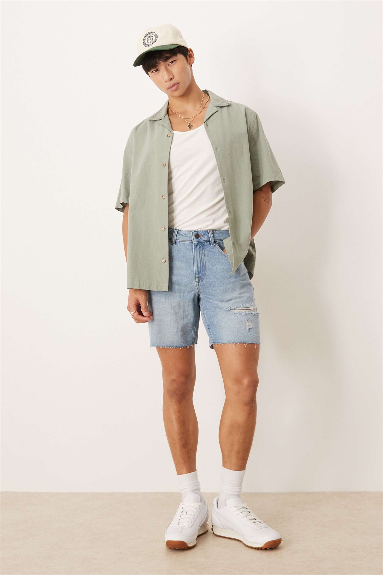 Джинсовые шорты средней длины облегающего кроя с порезами