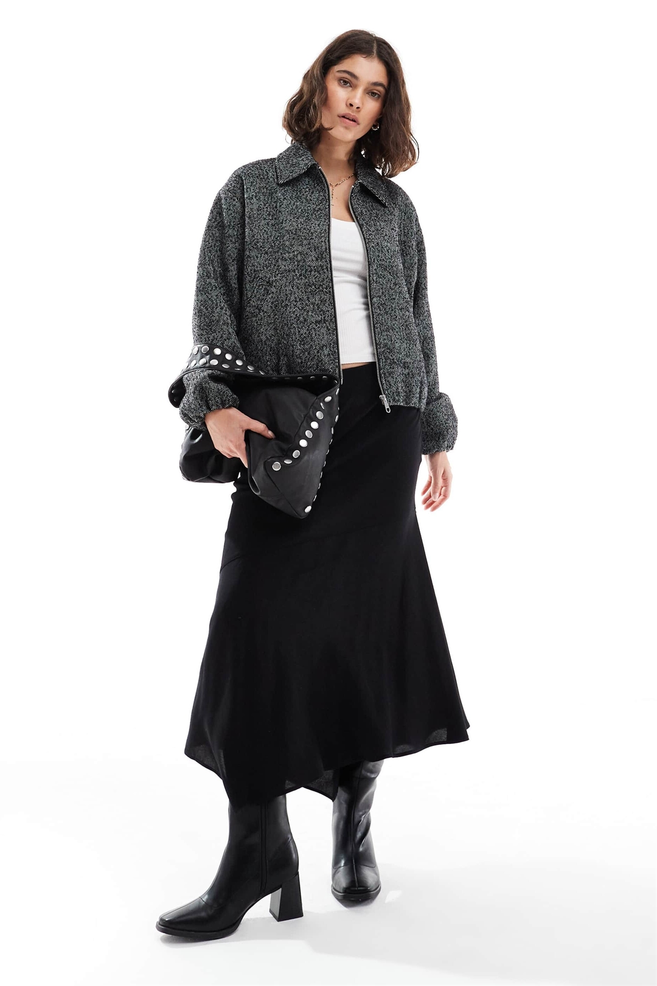 Бомбер с заниженными плечами из углеродного материала с рисунком «елочка»