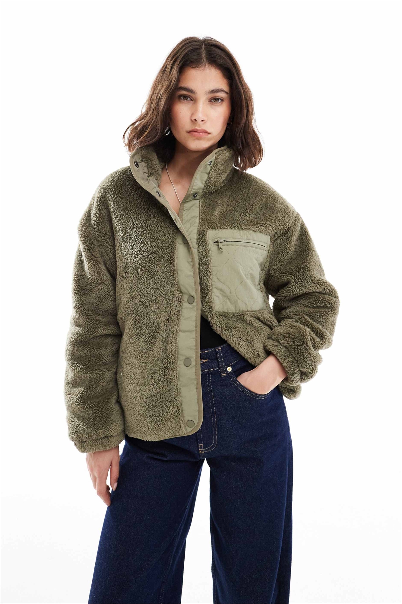 Флисовая кофта с контрастными карманами, цвет шалфейный зеленый