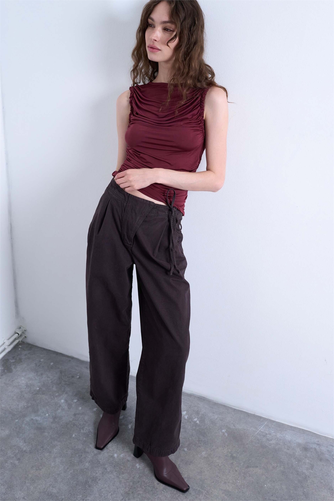 Брюки свободного кроя с полосками в стиле «баррел» шоколадного цвета