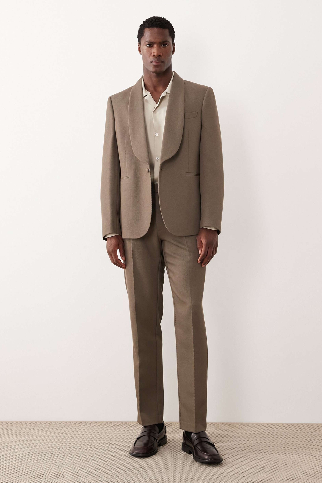 Твил: полуструктурированная ткань с узором из параллельных ребер Основной состав: 80% полиэстер, 18% вискоза, 2% эластан.