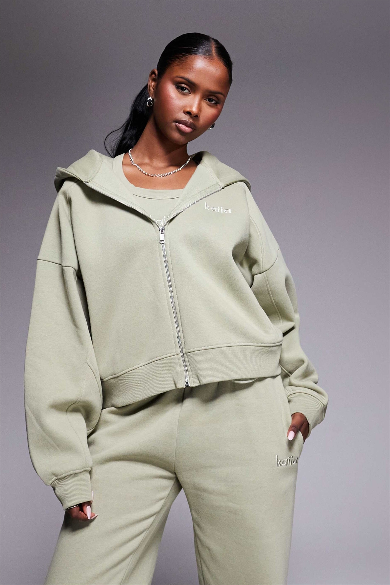 Укороченная толстовка с капюшоном, с высоким содержанием хлопка, вышитым логотипом и застежкой-молнией по шву co-ord