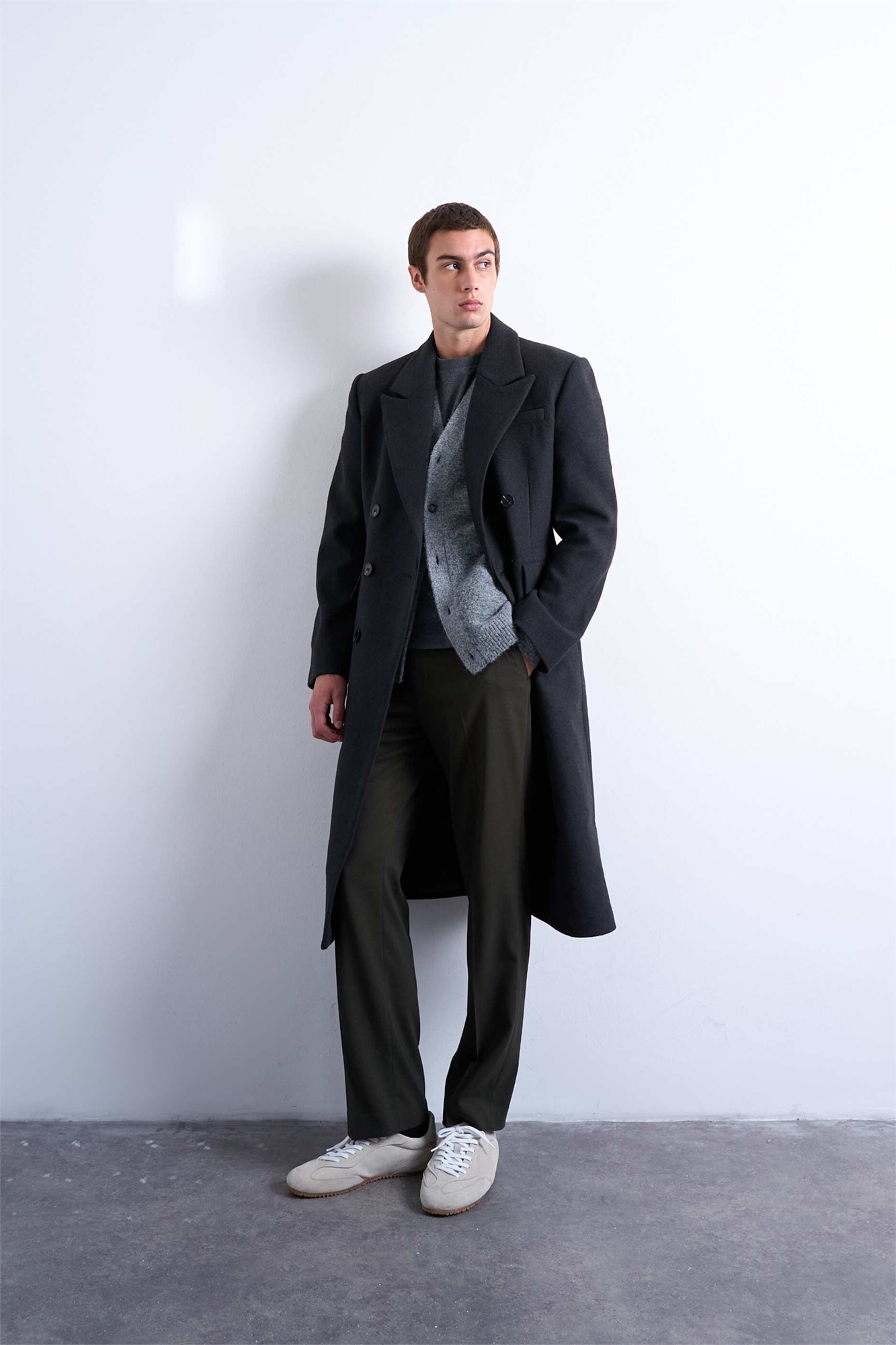 Двубортное пальто с зауженной талией из смешанной шерсти
