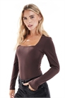 Боди с длинными рукавами и квадратным вырезом
