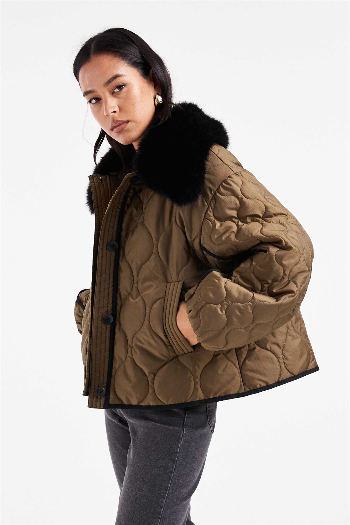 Стеганая гибридная куртка без воротника из ткани «борг»