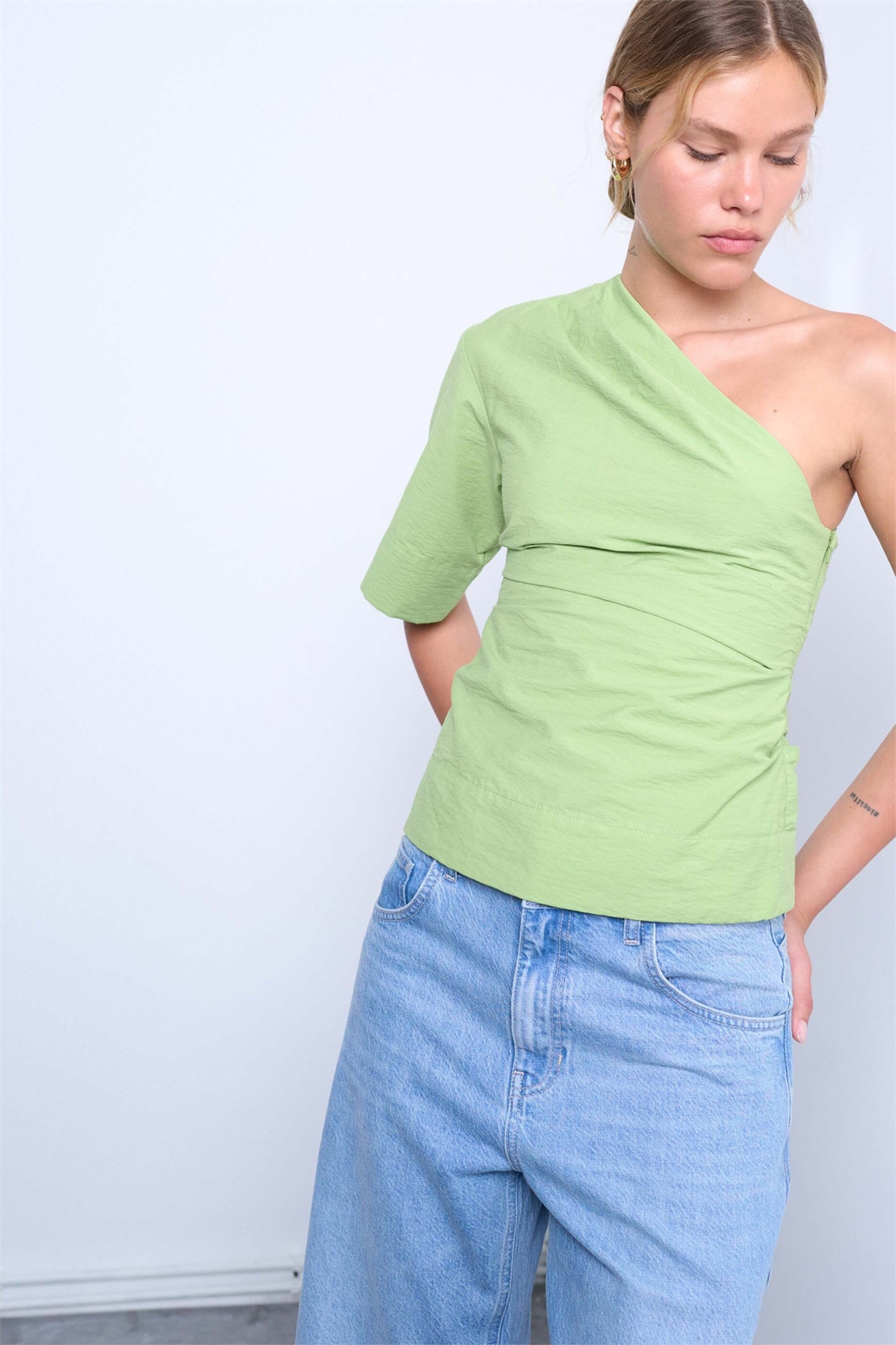 С открытыми плечами и драпированным вырезом