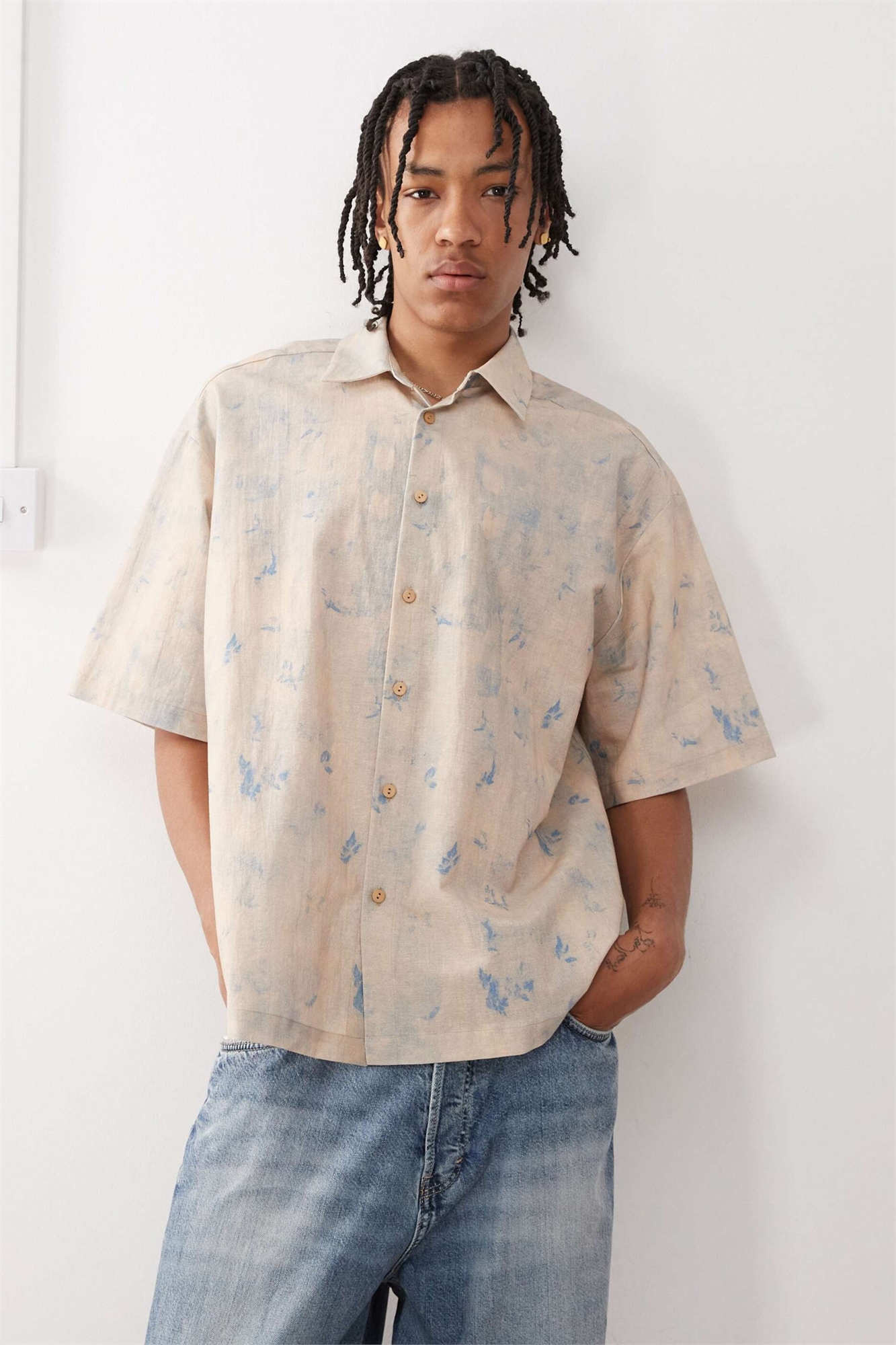 Рубашка прямого кроя с короткими рукавами и синим цветочным принтом