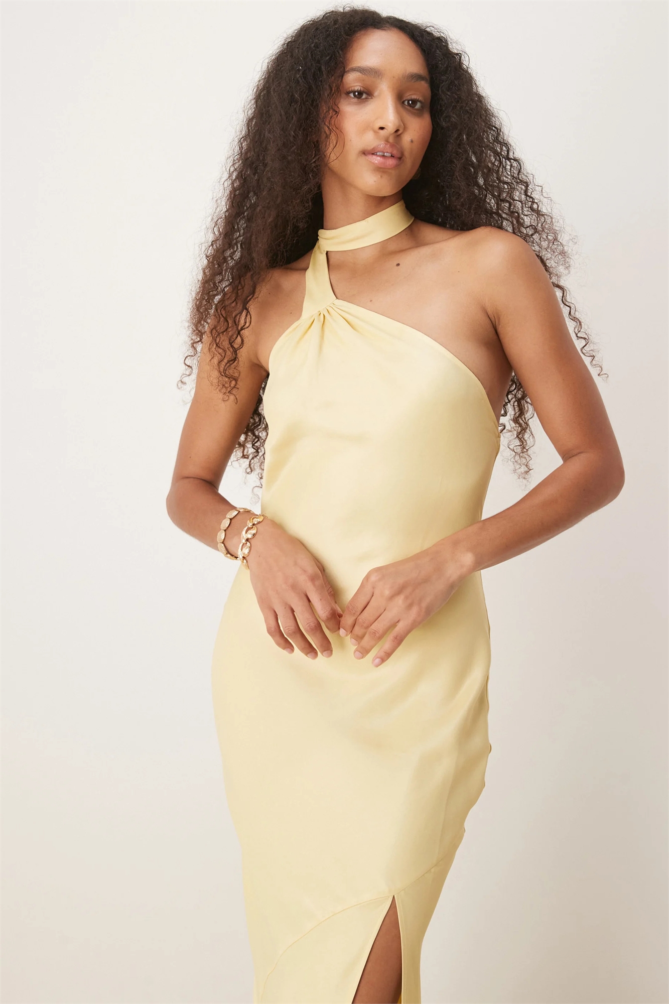 Макси-платье-комбинация с атласным воротником-галстуком
