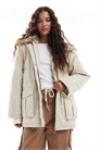 Твил: полуструктурированная ткань с рисунком в виде параллельных ребер Наполнитель: 100% полиэстер, подкладка: 100% полиэстер, верх: 100% хлопок, ватин: 100% полиэстер, искусственный мех: 47% акрил, 37% модакрил, 16% полиэстер.